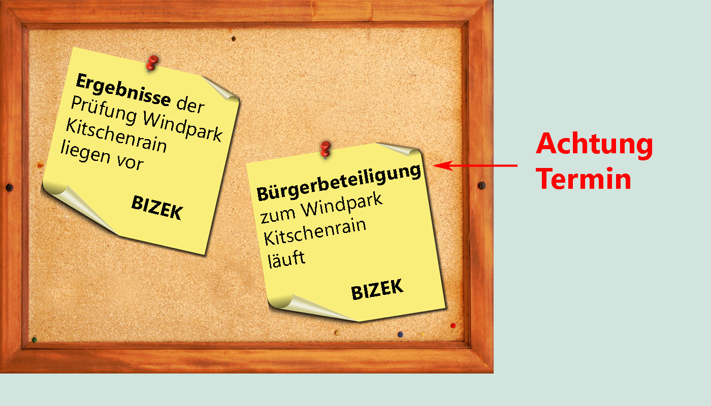 Will der Bürgermeister einen Windpark am Kitschenrain? BIZEK widerlegt die Informationen von Bürgermeister Hofmann.