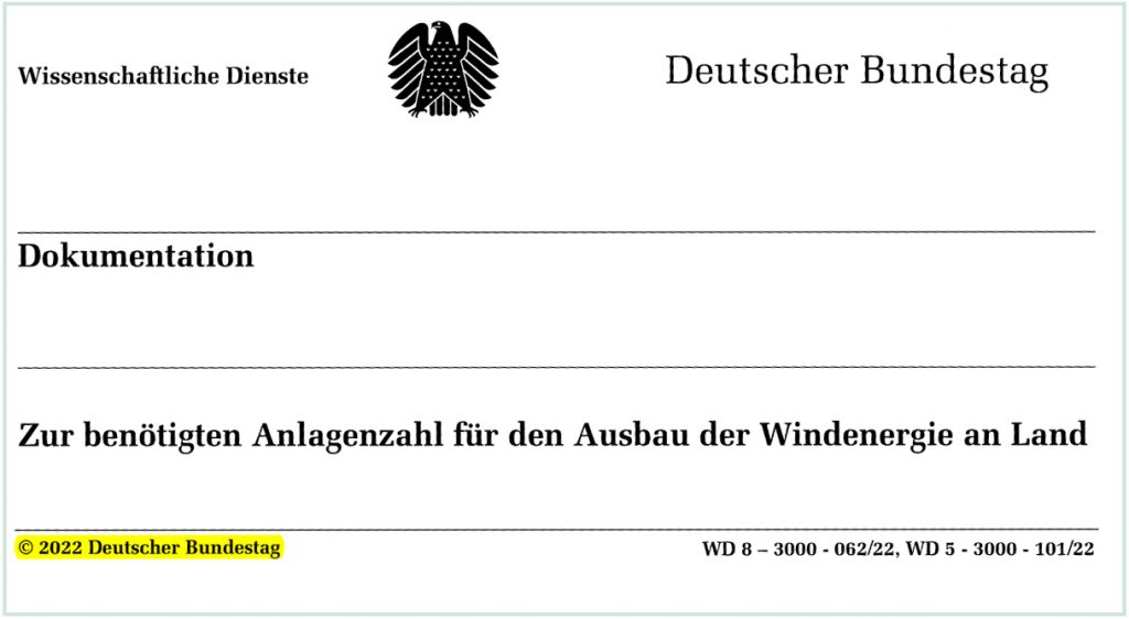 Niemand, außer der Investor benötigt die Windräder. Die wissenschaftlichen Dienste des Deutschen Bundestages (WD 8 – 3000 062/22, WD 5 3000 101/22) haben im Jahre 2022 folgenden Text aus einer aktuellen Arbeit veröffentlicht: